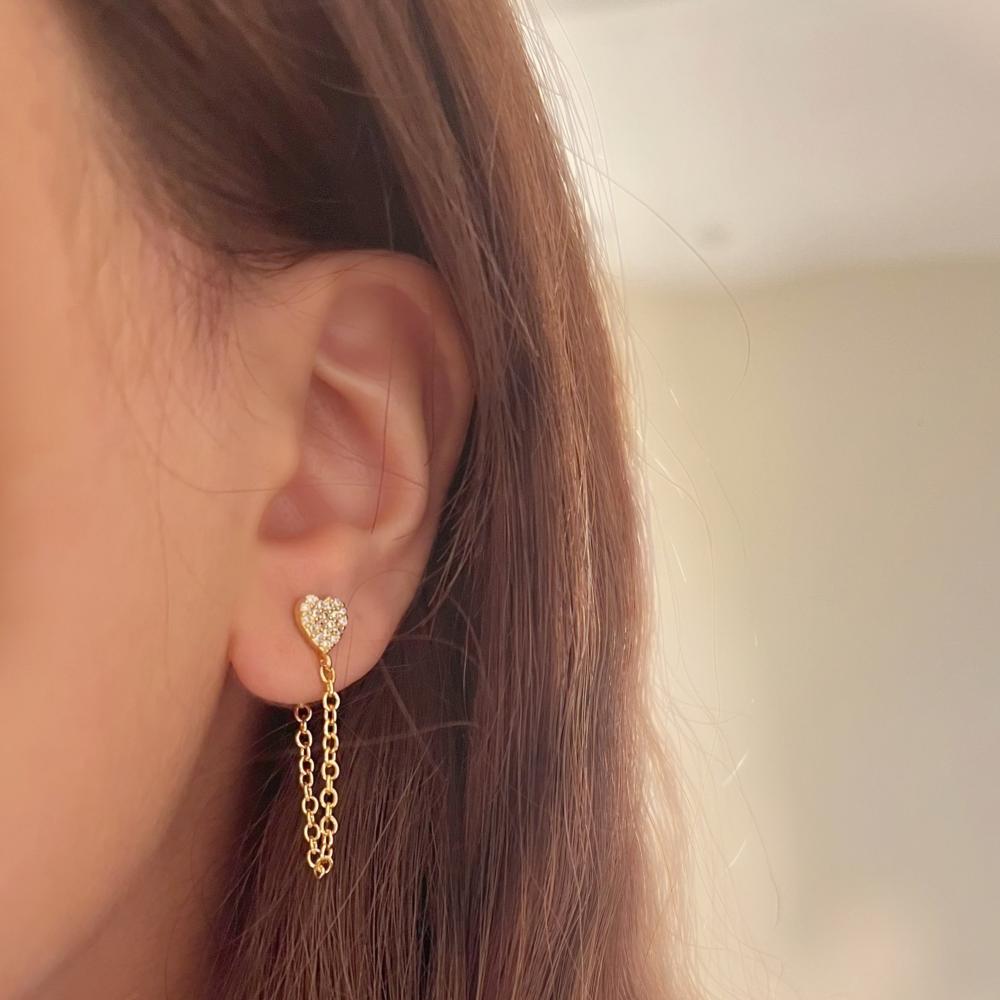 حلق ذهبي لامع مرصع بزركون مع سلسلة طويلة